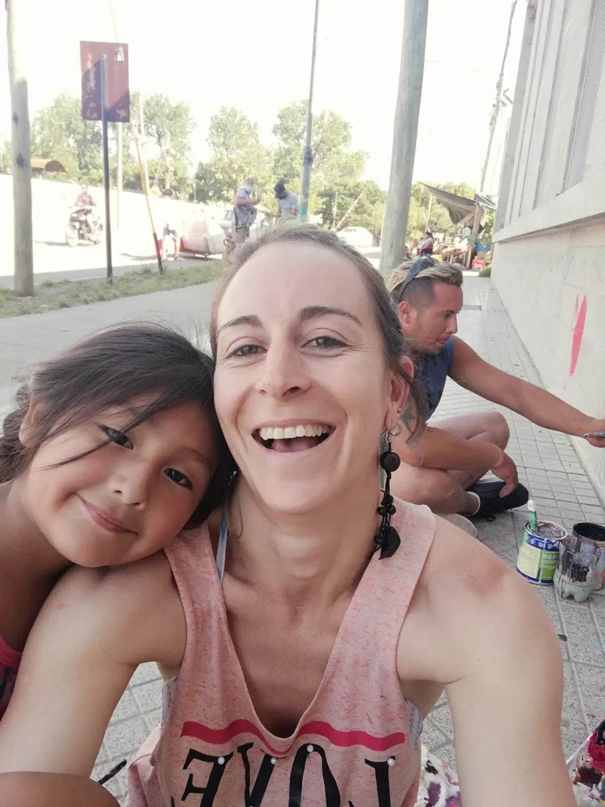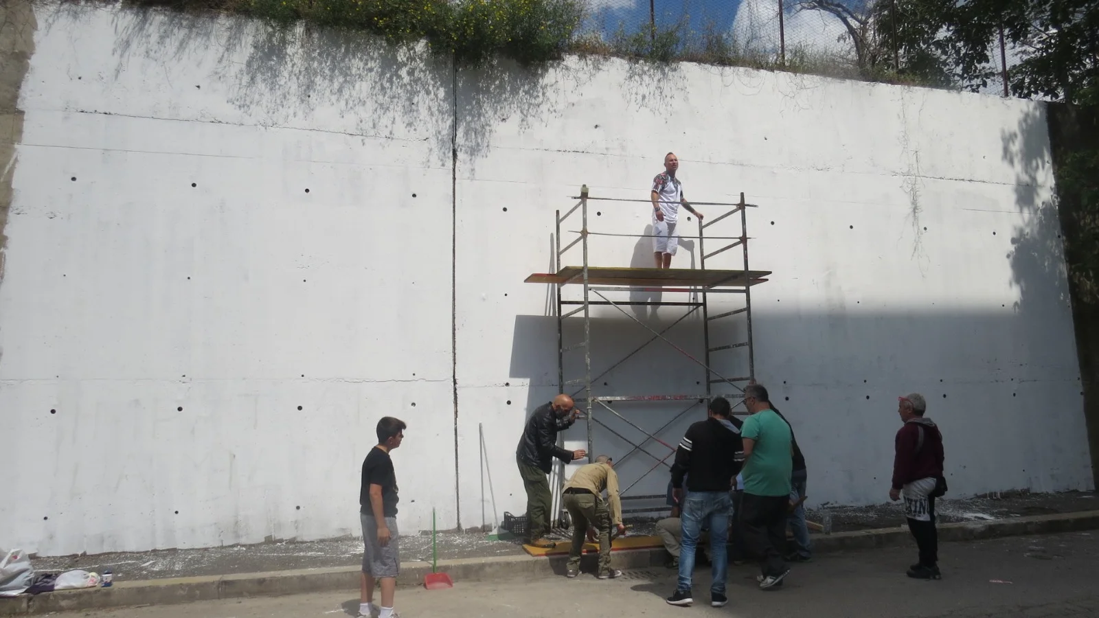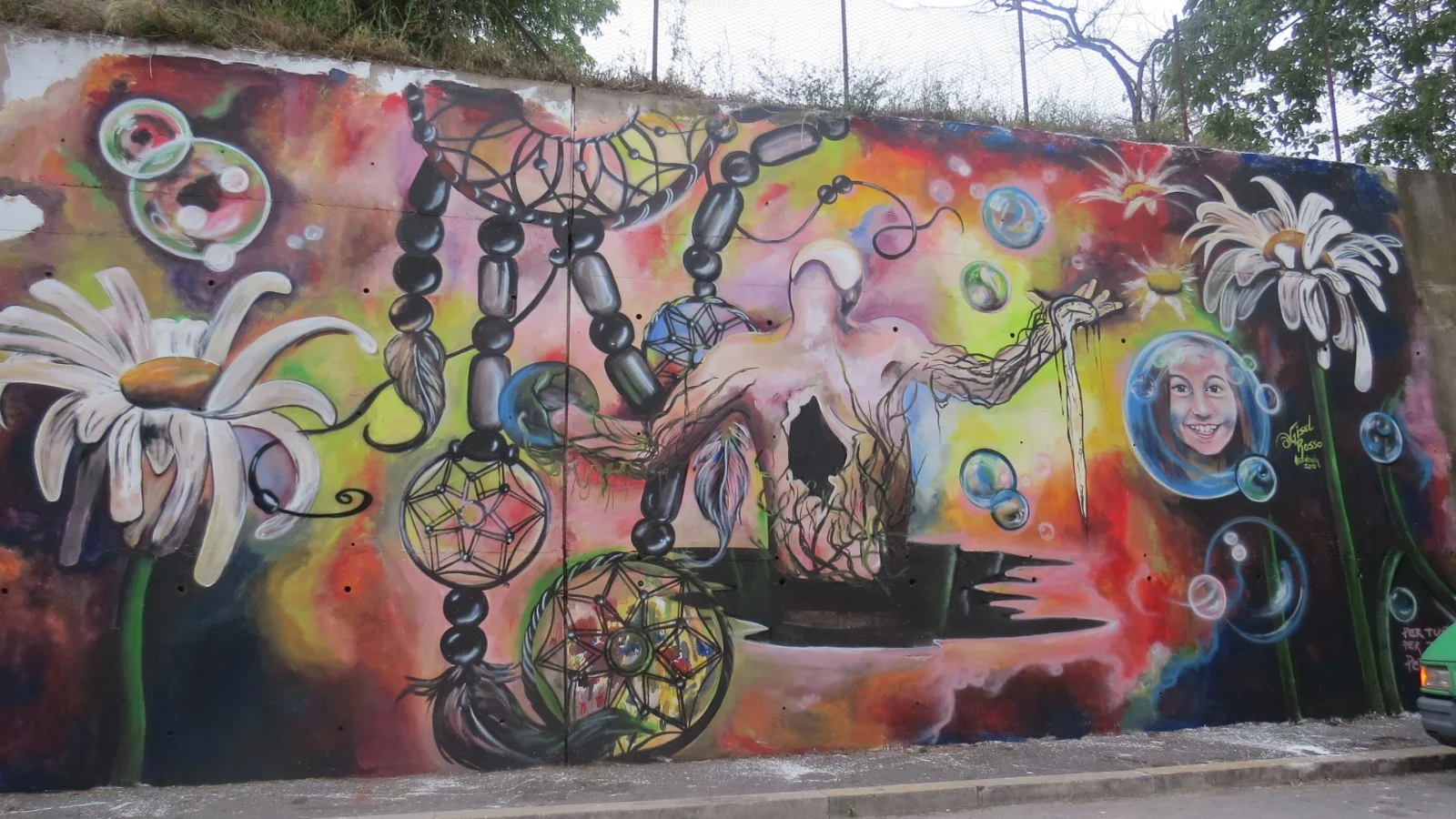 Estando en Roma, entre charlas con amigos, surge la propuesta de hacer en el barrio “el mamut” un homenaje a Giulia. Una niña que falleció en un terremoto, encontrandola en su búsqueda, abrazada a su hermanita menor, la cual vivió, y pintó junto a todos los vecinos del barrio,